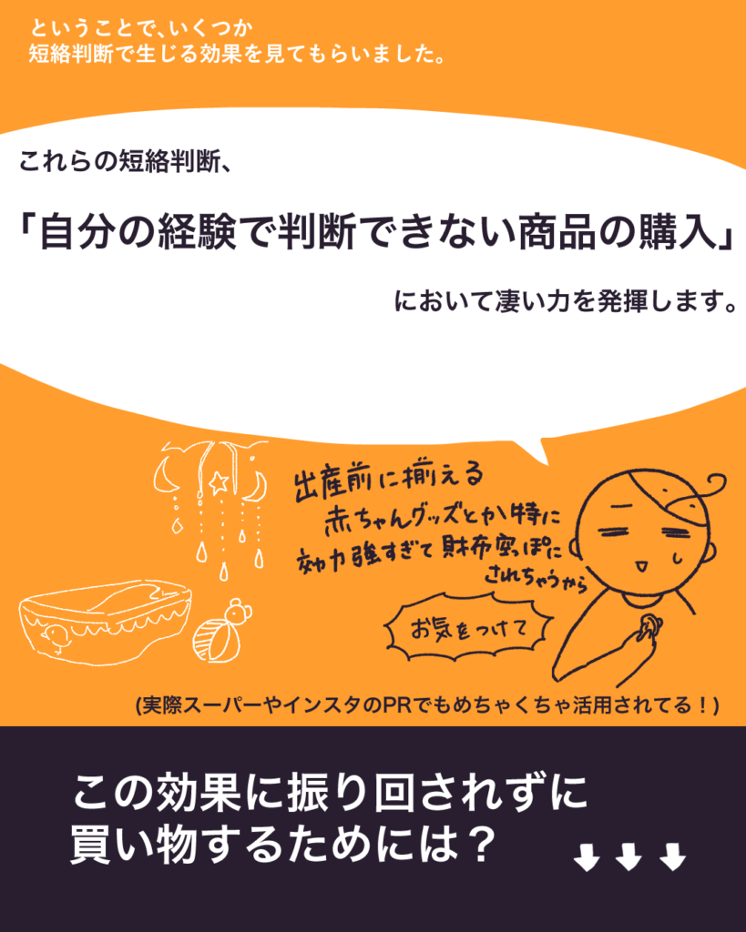 【かむらく5】それっぽいからこっち!短絡判断のやさしい罠 2022 8/19 かむらく 短絡判断 行動経済学 2022年8月19日2024年4月3日 あわせて読みたい 【かむらく6】母乳育児の悩みをマシマシにする効果たち 損を避けたい気持ち×価値を高める仕組みで、母乳育児がハードモードになる。 母乳にこだわりたくなる理由、読めばわかります。 かむらく 短絡判断 行動経済学 この記事が気に入ったら フォローしてね! Follow Me よかったらシェアしてね! URLをコピーする URLをコピーしました! 【かむらく4】遠くからは輝きが、手元では傷が見える。 【かむらく6】母乳育児の悩みをマシマシにする効果たち 関連記事 【かむらく10】心に働きかけて散財させてくる罠たち 2022年9月12日 【かむらく9】種類が多すぎると選ぶのを諦めたくなる心理 2022年9月10日 【かむらく8】1枚買ったら2枚目無料!キャンペーンが人気の理由 2022年8月22日 【かむらく7】母乳育児の悩みをマシマシにする効果たち2 2022年8月21日 【かむらく6】母乳育児の悩みをマシマシにする効果たち 2022年8月20日 【かむらく4】遠くからは輝きが、手元では傷が見える。 2022年8月16日 【かむらく2】失敗の壁で囲んで追い込む。 2022年8月15日 【かむらく3】レビューの押し売り 2022年8月14日 コメント コメントする コメントをキャンセルコメント ※ 名前 ※ メール ※ サイト 次回のコメントで使用するためブラウザーに自分の名前、メールアドレス、サイトを保存する。
