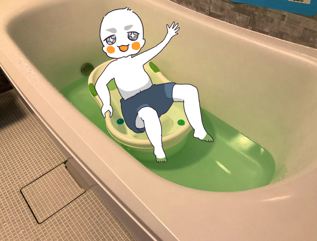 そんなベビーバス、もはや推奨身長や背もたれの長さを完全にオーバーした3歳の頃、凄い便利な使い方を見つけてしまったんです(※メーカーの適用身長は75cm以下なので、ここから先は自己責任で使用しています)