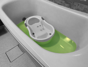 悩みに悩んだ末、これまで大活躍してきたベビーバスを浴室の洗い場にセット。